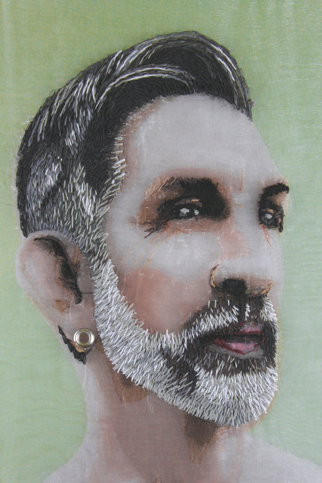 A textile portrait of Lance Glenn.